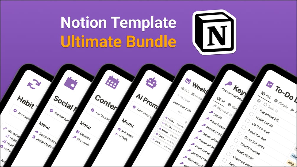 Organize everything in Notion with this complete bundle. The Ultimate Notion Template Bundle gives you access to a powerful collection of templates designed to streamline productivity, content planning, and personal projects. This all-inclusive bundle helps you manage projects, organize ideas, and track tasks with a structured system.